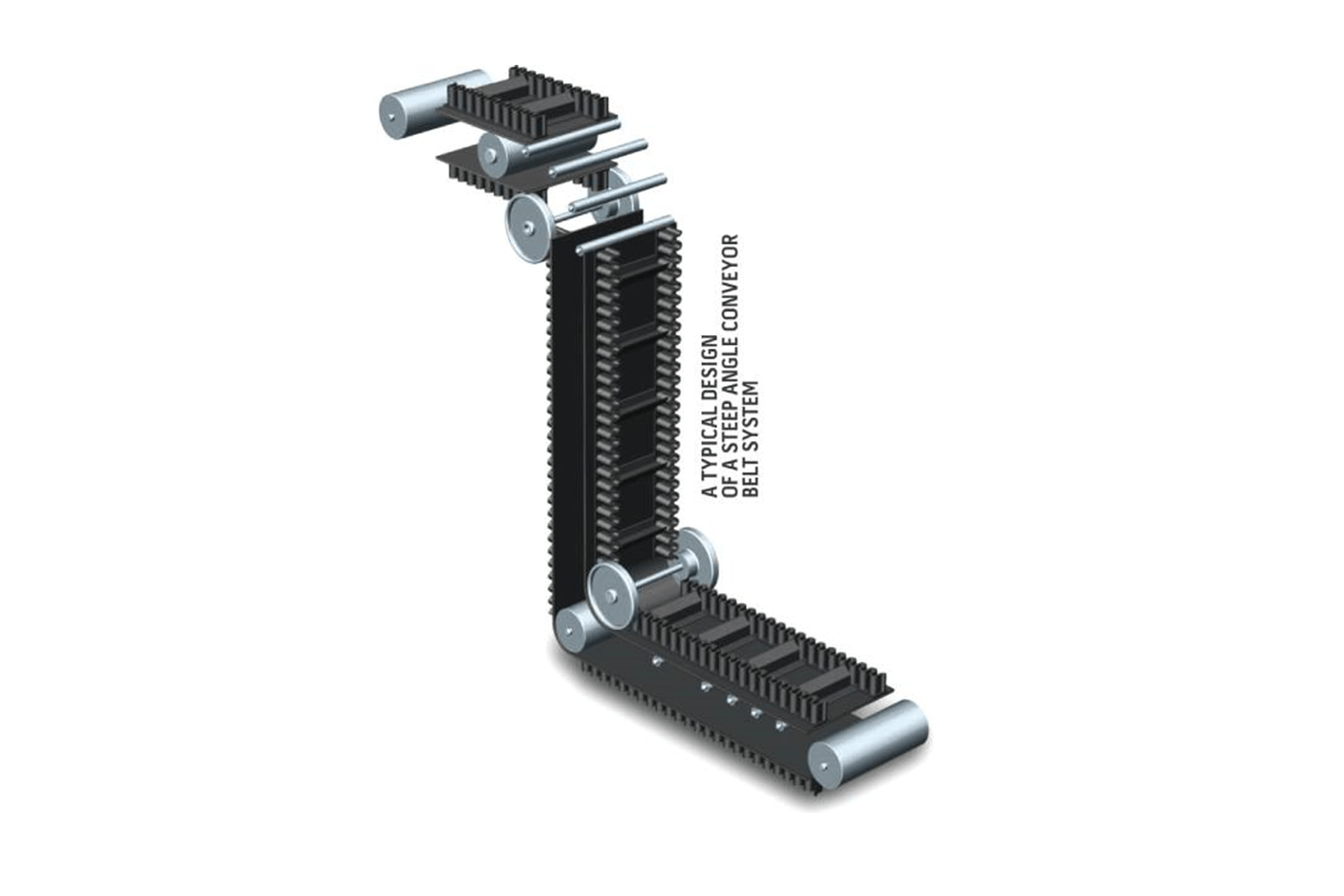 Corrugated sidewall belts ideal for bulk material transport.